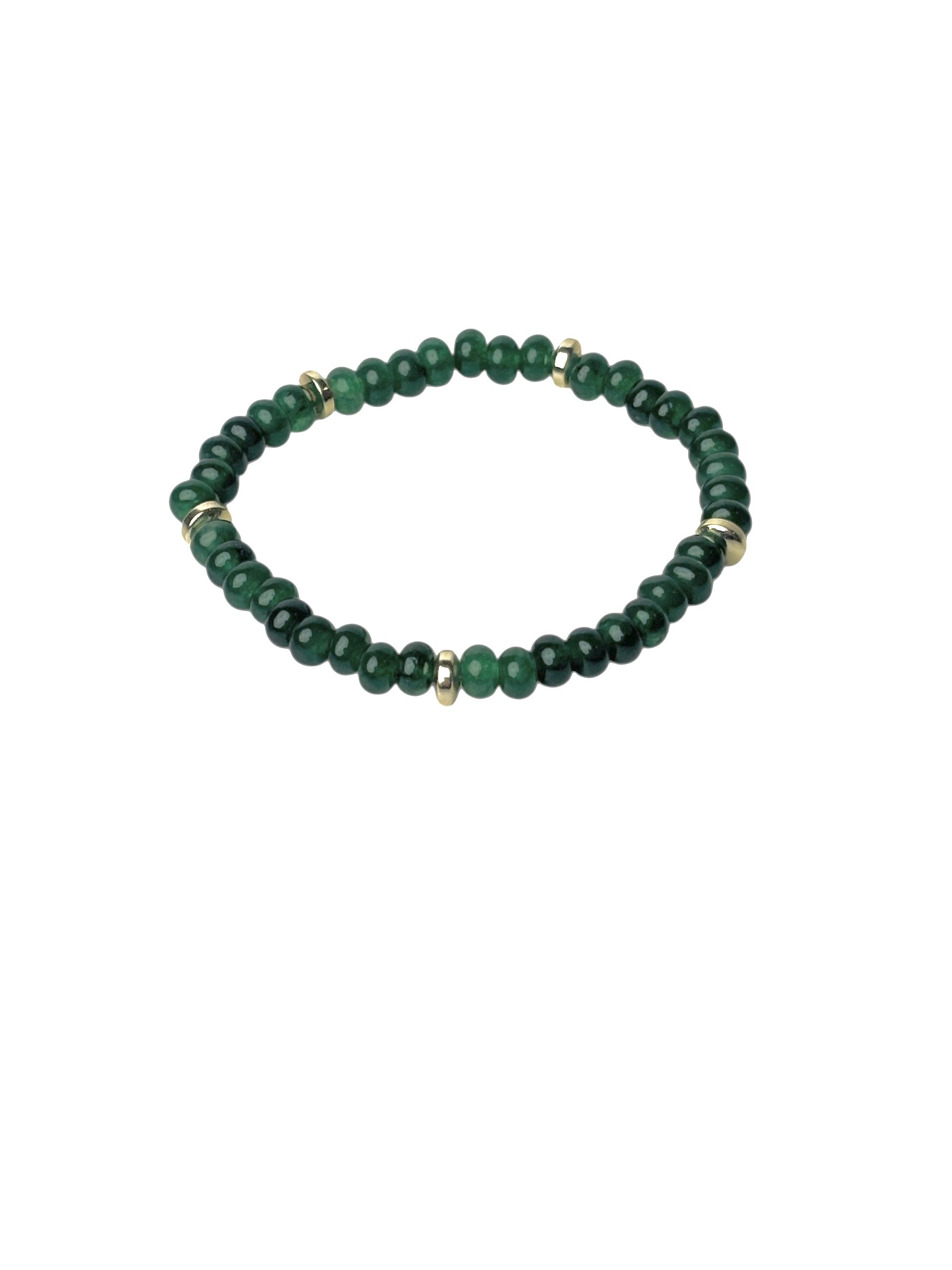 Perfect for Christmas! Our new 6mm green dyed jade rondelle and gold bead bracelet will look great any time of year but especially during Christmas!