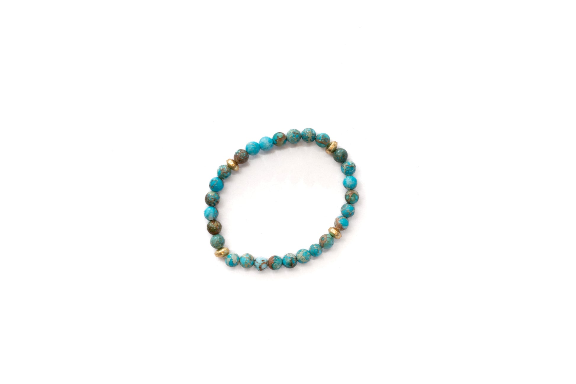 Sweet as candy! This 6mm colorful jawbreaker mosaic jasper bead bracelet accented with gold plated spacers. We promise it will make you smile!